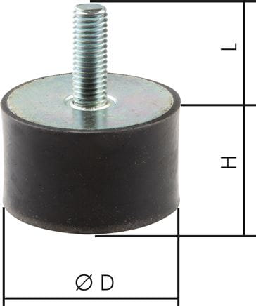 Wibroizolator gumowo-metalowy z jednostronnym trzpieniem gwintowanym M6 - ø 20 / 15 mm