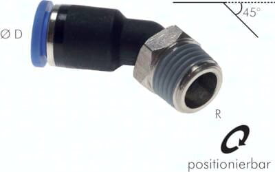 Złączka wtykowa kątowa 45° R 1/8" ⌀ 10 (teflon)